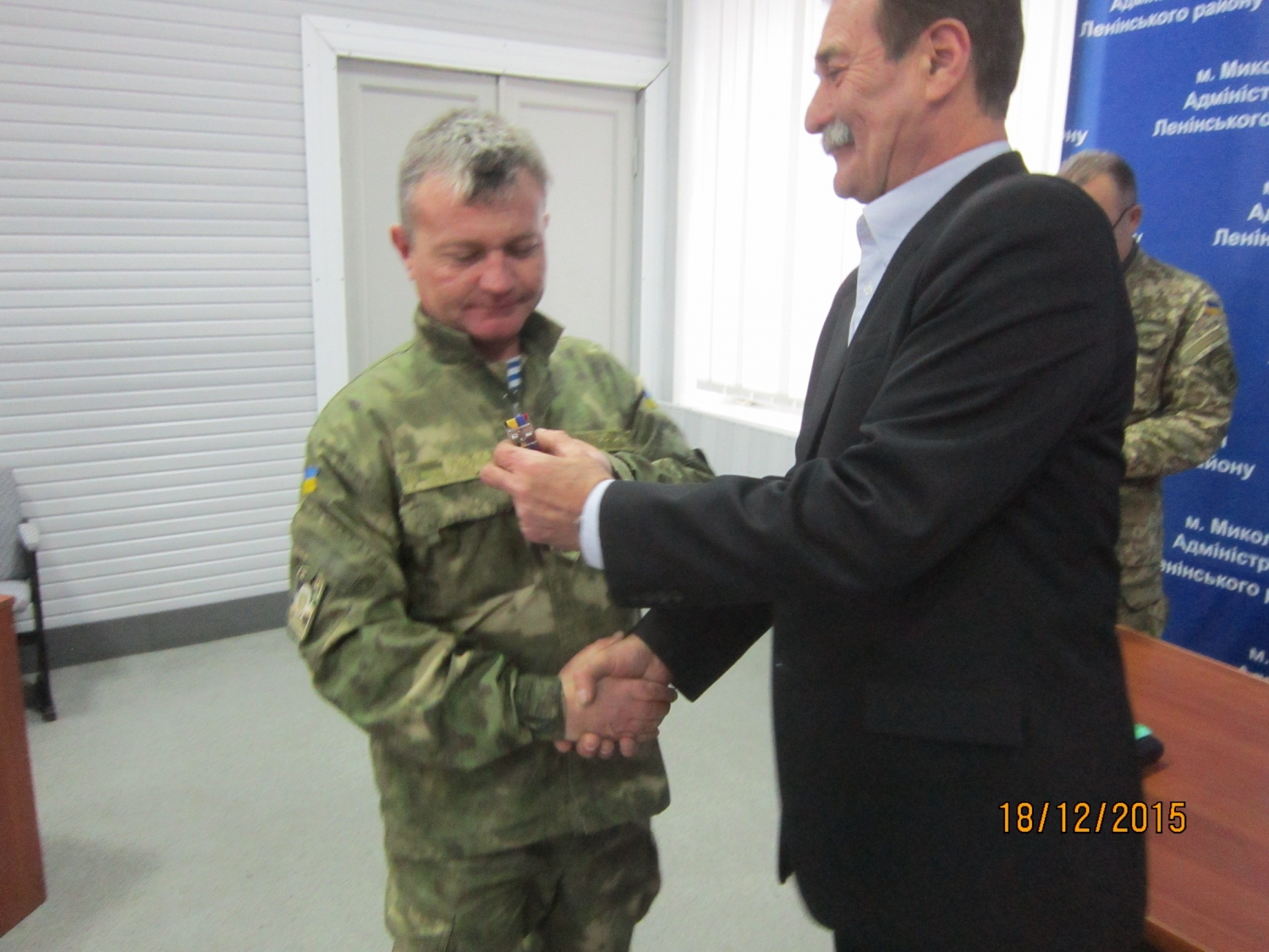 После чего 16 воинам были вручены государственные награды участника АТО из рук главы администрации и подполковника Ленинского военного комиссариата.
