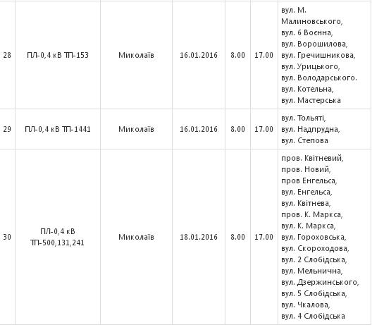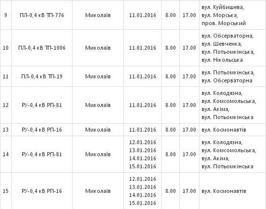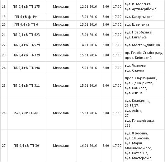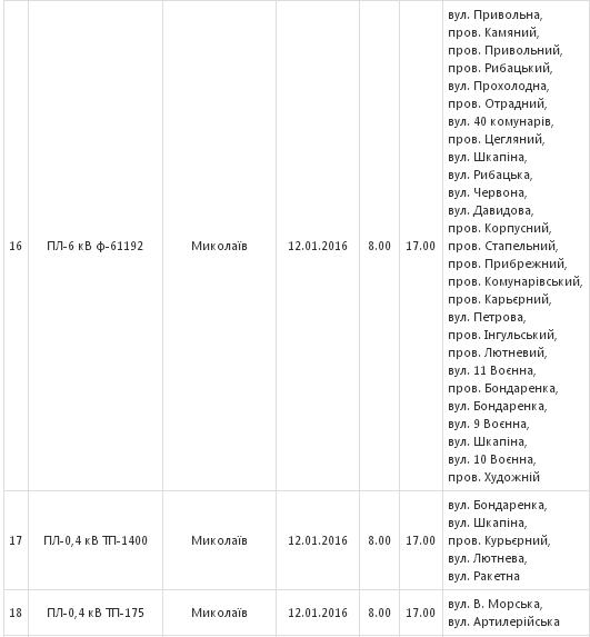 С 11 по 20 января сотрудники ПАО «Николаевоблэнерго» будут проводить в Николаеве плановое отключение электроэнергии в связи с проведением ремонтных работ.