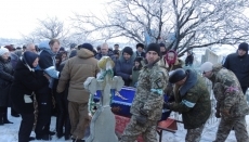 Прощаясь с героями АТО, Снигиревщина устлала заснеженную дорогу красными маками