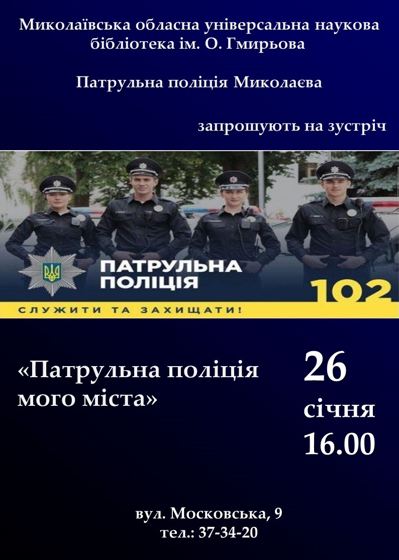 Николаевская областная библиотека имени Алексея Гмырева проведет встречу николаевцев с новыми полицейскими, на которой горожане в неформальной обстановке смогут пообщаться со стражами правопорядка.
