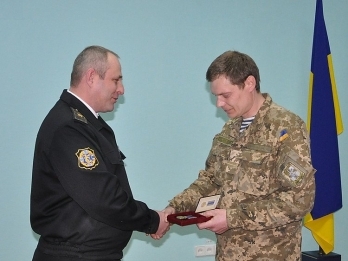 Начальник штаба - первый заместитель командующего Военно-Морских Сил Вооруженных Сил Украины контр-адмирал Андрей Тарасов за личное мужество и героизм, проявленные в защите суверенитета и территориальной целостности Украины, вручил николаевскому стрелку - помощнику гранатометчика отделения подразделения морской пехоты младшему сержанту Дмитрию Тофану государственную награду Украины медаль «Защитнику Отечества».