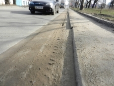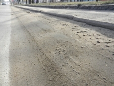 Он отметил, что по проспекту возле бордюров слой песка достигает от 30 до 50 сантиметров.