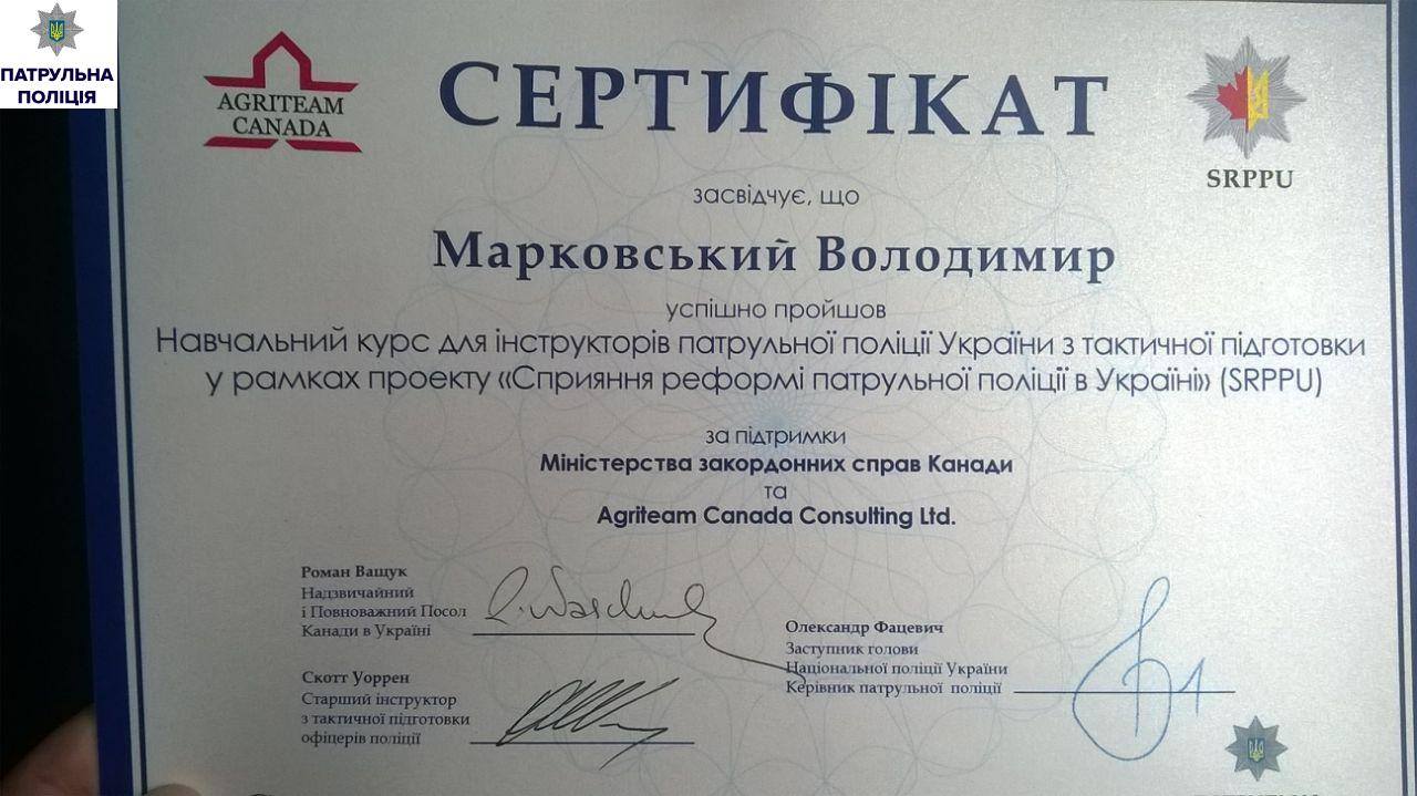 Особый акцент при обучении делался на тактике действий в ситуациях с высокой степенью риска и улучшению уровня педагогического мастерства. Все четверо представителей Николаева среди других 30, окончивших курсы, получили сертификаты. Их вручили начальник Департамента патрульной полиции Украины Евгений Жуков и Чрезвычайный полномочный посол Канады в Украине Роман Ващук.