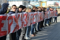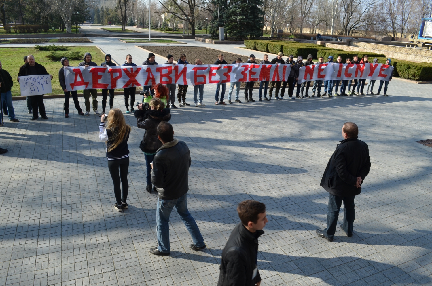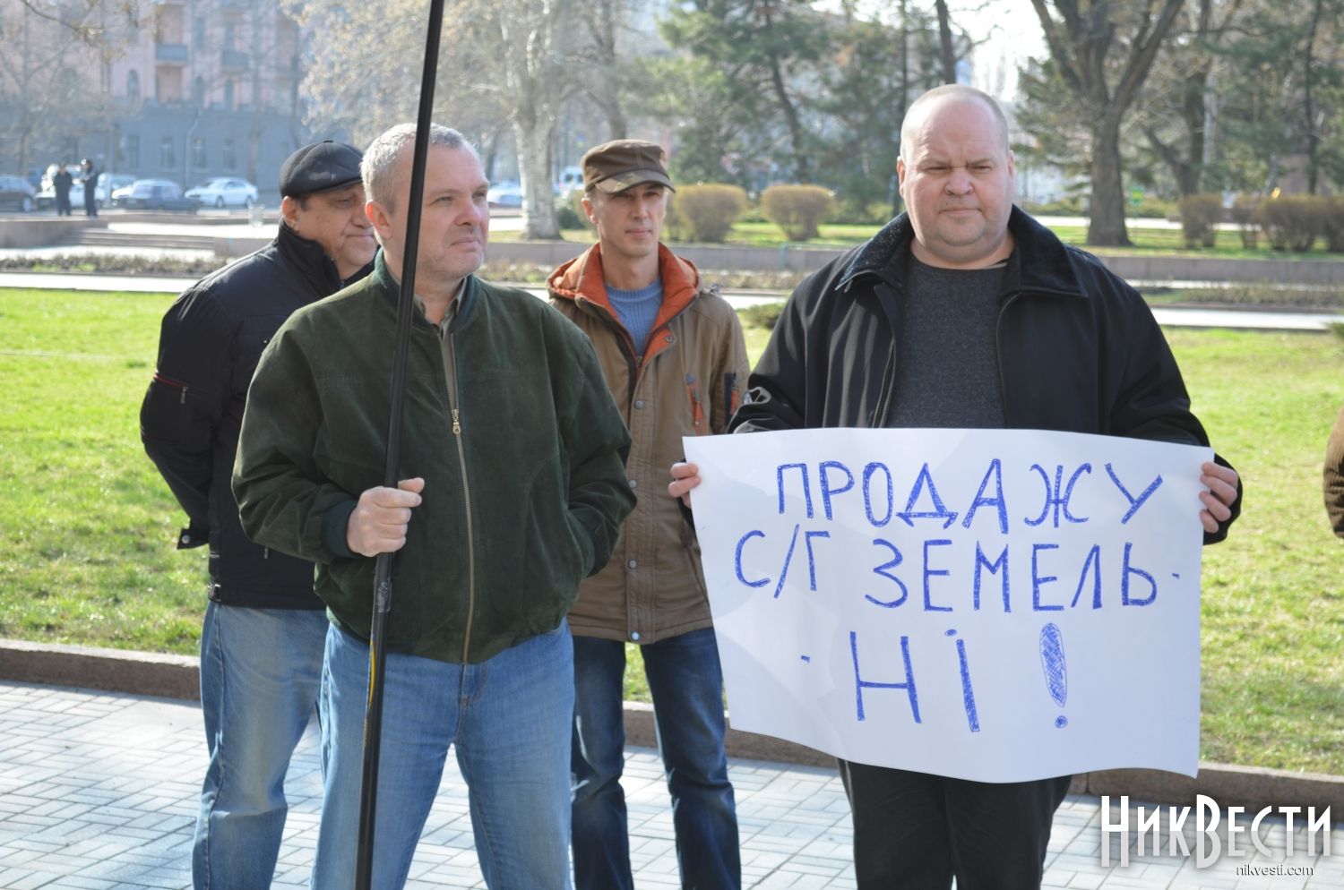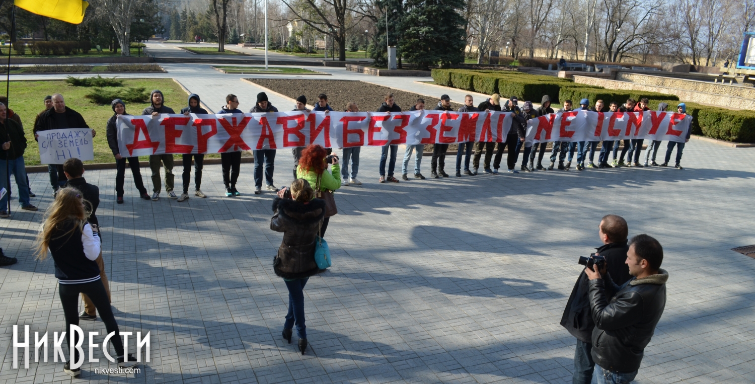 Сегодня в Николаеве представители общественной организации «Гражданский корпус «Азов» провели акцию против инициативы премьер-министра Арсения Яценюка в рамках земельной реформы продать на открытом аукционе один миллион гектаров земли.