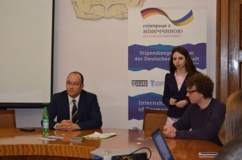 В рамках встречи выступил лектор DAAD в Украине - Якоб Валощик, который презентовал стипендиальные программы немецкой службы академических обменов (DAAD). Под девизом «Изменения через обмен» DAAD работает над тремя большими темам: стипендии для лучших; структуры, открытые к миру, и знания для научного сотрудничества. Допуском к обучению в Германии является: «Аттестат зрелости» и 1 год в украинском вузе, или подготовительный колледж в Германии и экзамен на установление знаний. Информацию о признании дипломов можно посмотреть здесь.