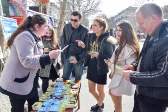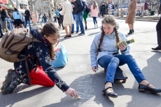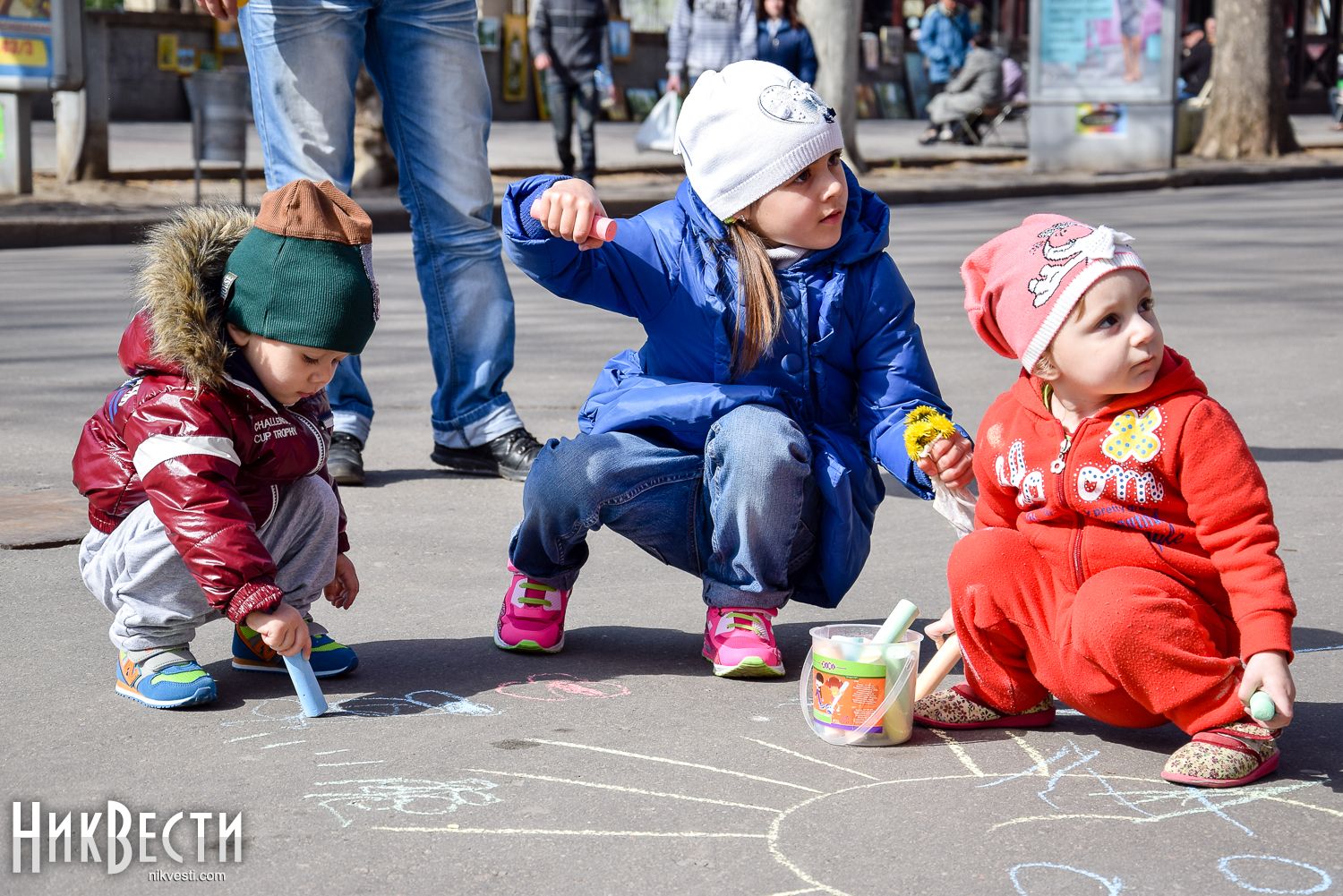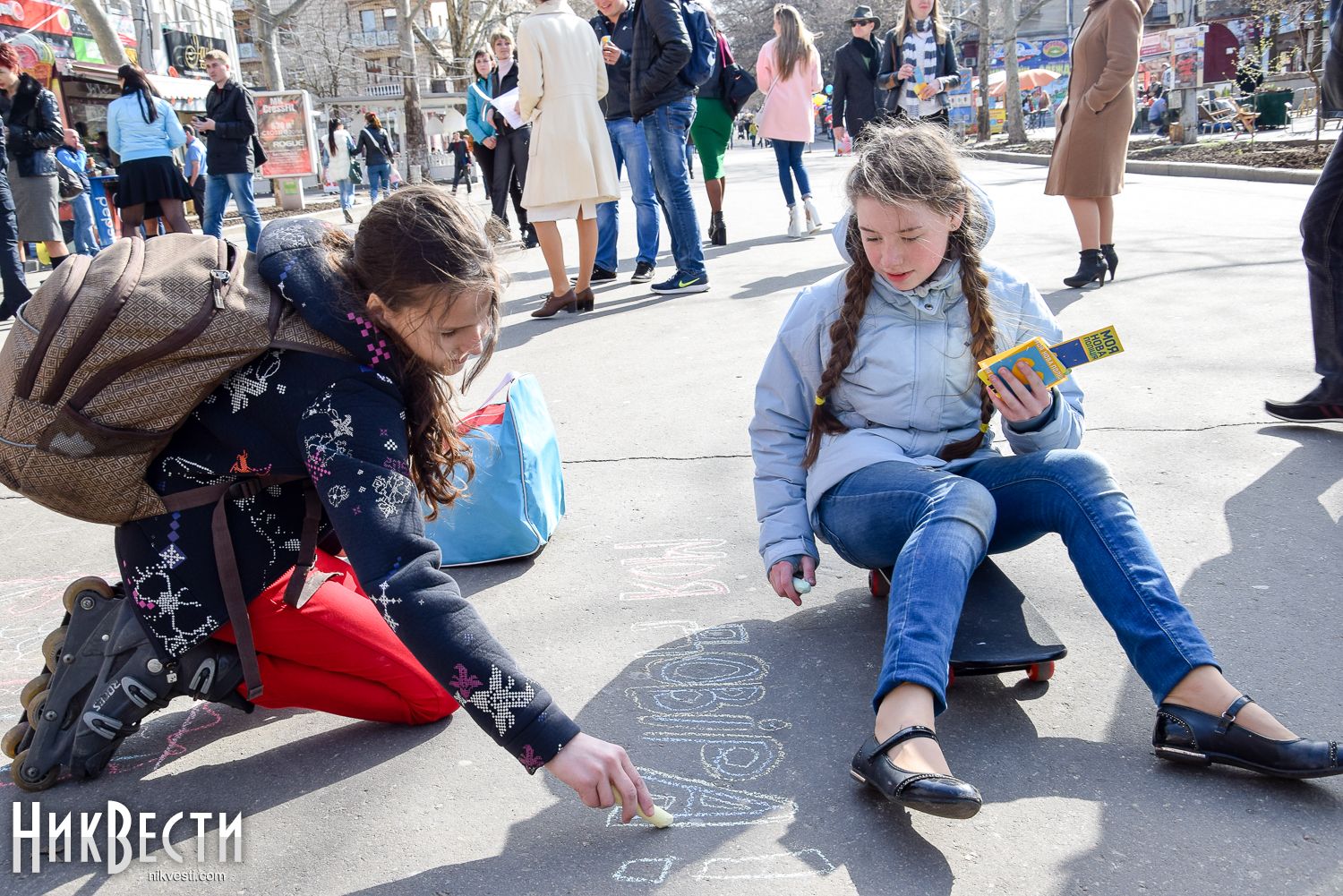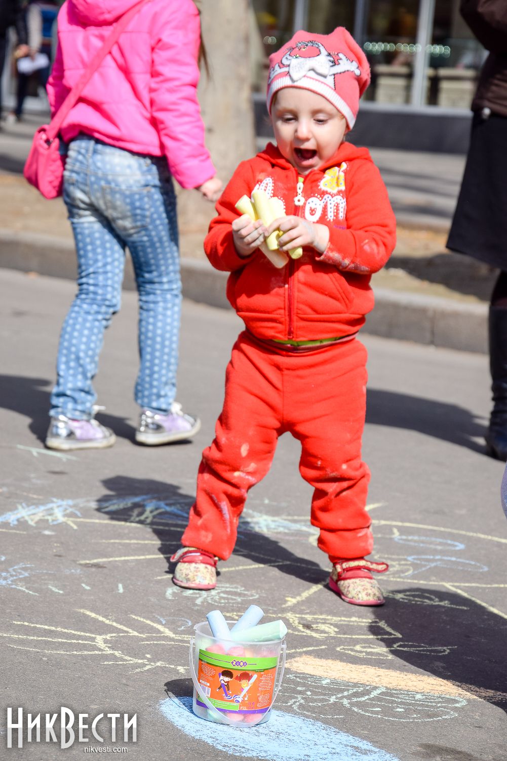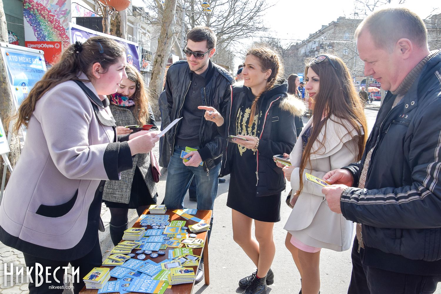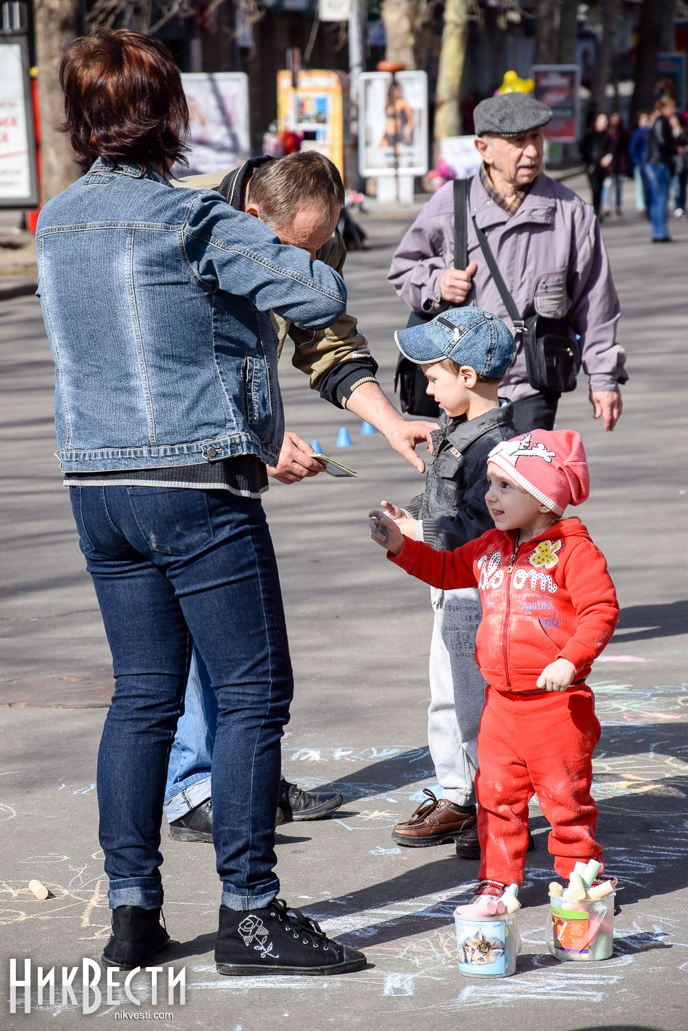 Большим спросом пользовалась игровая зона. Здесь за правильные ответы в викторине можно было получить в подарок тематические сувениры. А самых маленьких николаевцев обеспечили всеми необходимыми материалами для рисования на асфальте.