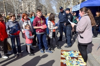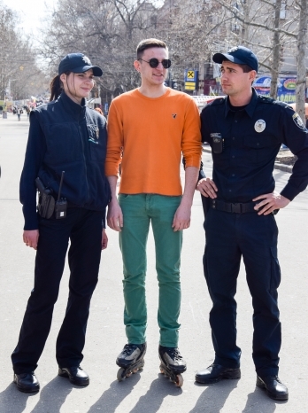 И если предыдущие акции проводились в стенах николаевских библиотек, то на этот раз местом действия стала улица Соборная, как раз напротив Каштанового сквера. Здесь патрульные постарались заслужить доверие николаевцев, отвечая на вопросы горожан, фотографируясь с ними и даже приняв участие в флешмобе, передает корреспондент НикВестей.