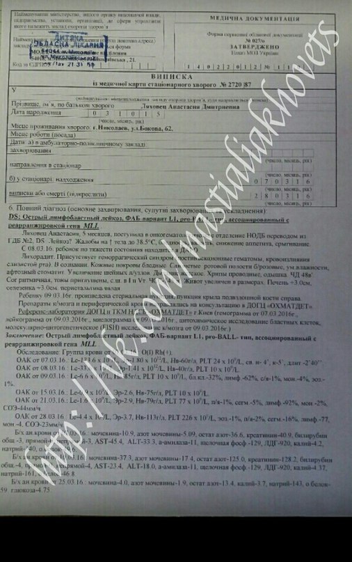 Как отметили организаторы, девочке всего 6 месяцев, ей поставили страшный диагноз – острый лимфобластный лейкоз (рак крови).