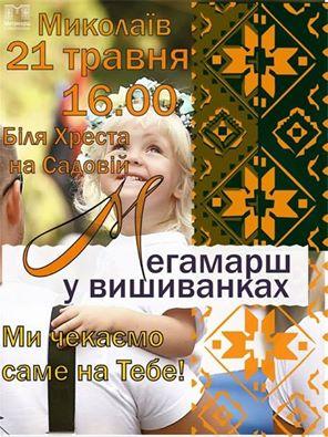 В Николаеве 21 мая состоится традиционное шествие «VI Мегамарш вышиванок». Проведение парада приурочили к празднованию Всеукраинского дня вышиванки.