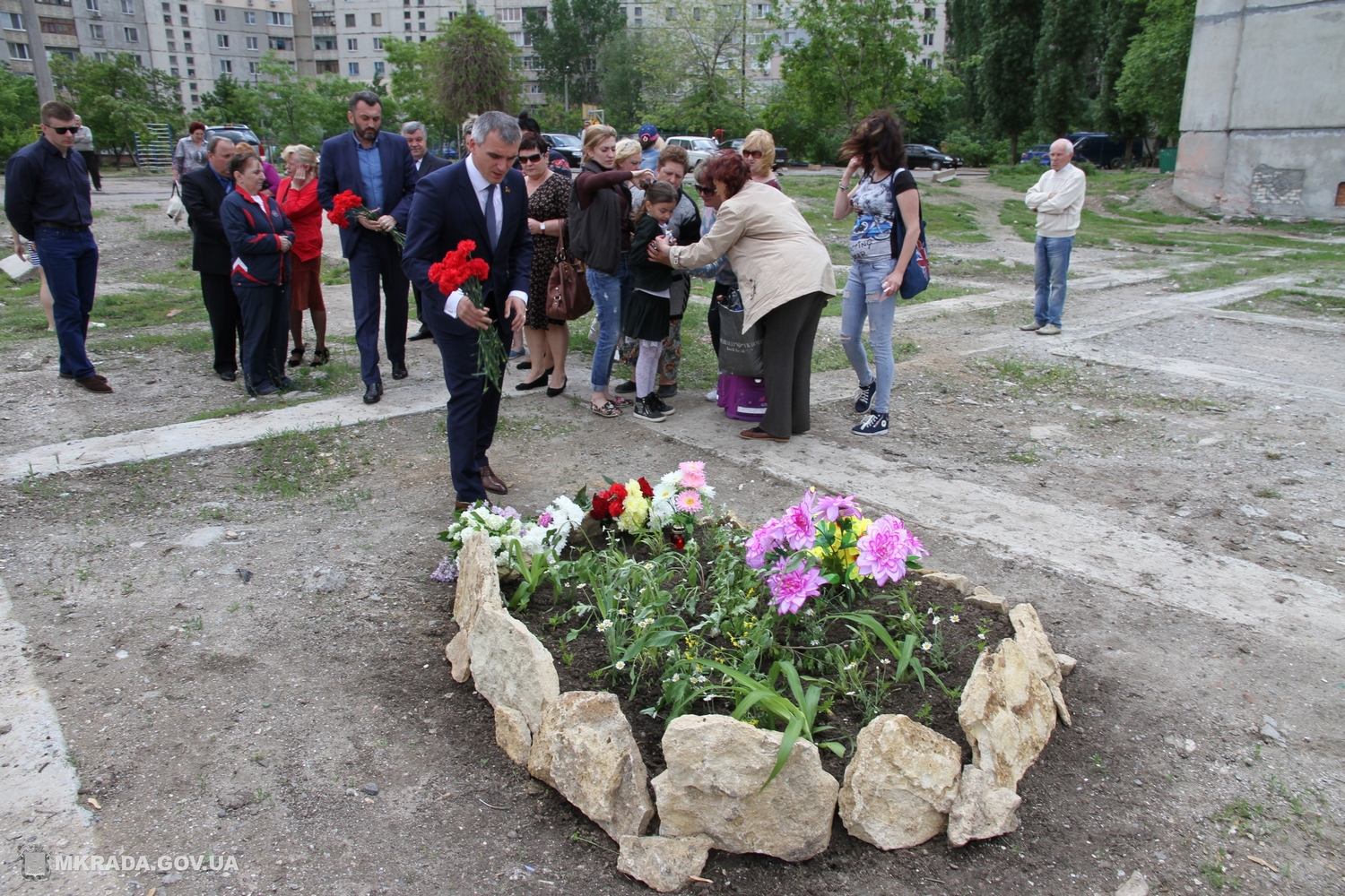 Сегодня, 12 мая, Николаевский городской голова Александр Сенкевич почтил память жертв трагедии, которая произошла два года назад на улице Лазурной, 40. Тогда в результате взрыва газа под обломками жилого дома погибли 7 горожан.