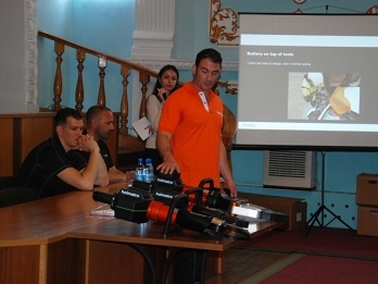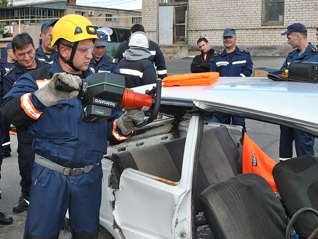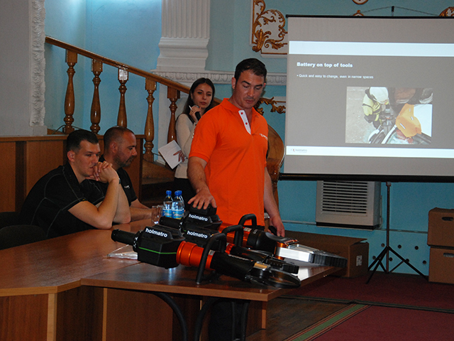 В ходе практической части спасатели совместно с инструкторами компании отработали технику спасения людей из автомобиля и в высотных зданиях. Инструктор компании Holmatro из Нидерландов Иан Дунбар от метил, что ужене первый год сотрудничаем с украинскими спасателями.