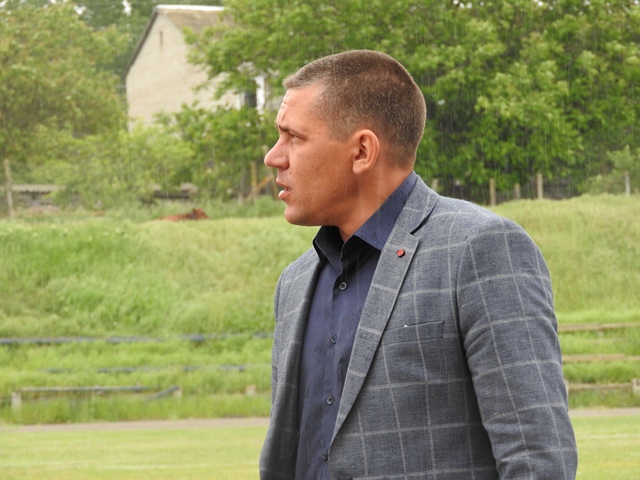 Сергей Танасов, несмотря на дождь, проинспектировал газон стадиона и пообещал сделать все возможное для ремонта главной спортивной арены Березанки.