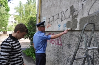 В Николаеве полицейские вместе со школьниками зарисовывали граффити с рекламой наркосайтов