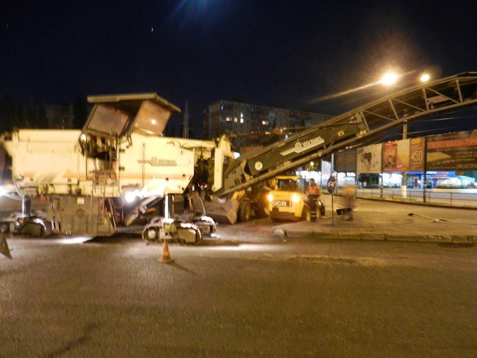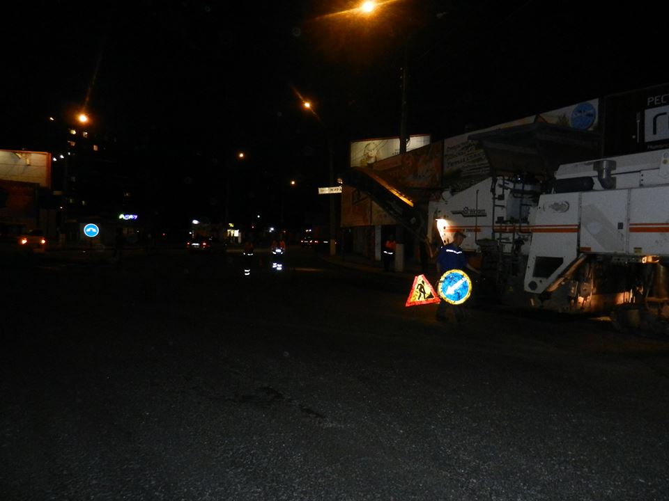 Сегодня ночью на площади Победы дорожники, как и обещал городской голова, срезали часть асфальтного покрытия, которое было временно уложено для удобного проезда кортежа Президента.