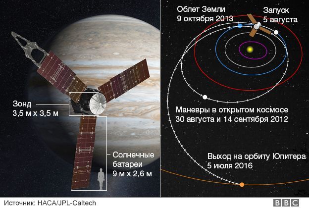Чтобы достичь Юпитера, космическому аппарату стоимостью 1 млрд долларов потребовалось пять лет. Он был запущен в 2011 году и с тех пор преодолел 3 млрд километров.
