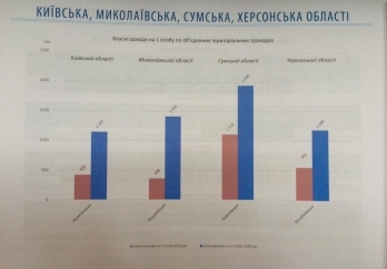 Кроме того, по словам депутата, зафиксирован кардинальный рост объема собственных доходов местного бюджета в четыре раза (на 3,7 миллиона гривен). На 1000 гривен увеличился объем собственных доходов на 1 жителя общины (с 358 гривен до 1420).
