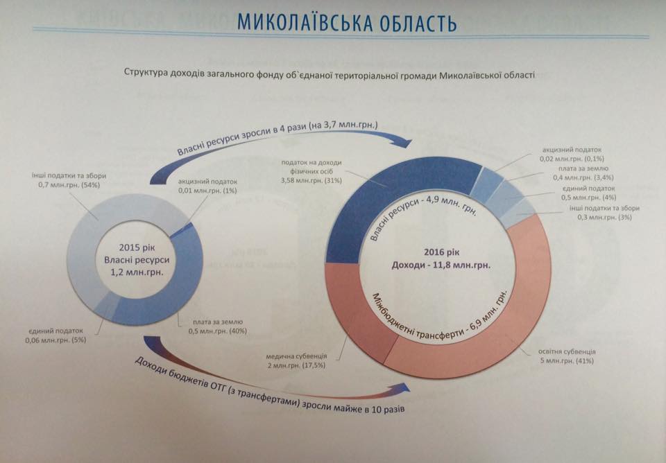 Куцурубская объединенная территориальная община (первая на Николаевщине ОТГ) имеет на 2016 год утвержденный объем доходов общего фонда бюджета с трансфертами из государственного бюджета в размере 11,8 миллиона гривен, что в 10 раз больше уточненных показателей местных бюджетов на 2015 год.