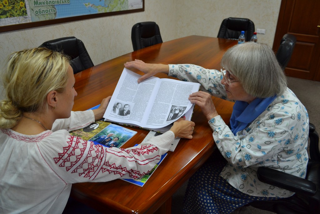 Председатель Николаевского областного совета Виктория Москаленко встретилась с краеведом, автором многих книг Татьяной Волошиной. Ветеран представила чиновнице свои книги, которые, по мнению главы облсовета, могли бы способствовать героико-патриотическому воспитанию молодежи области.