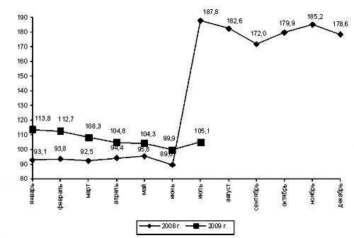 Динамика объема сельскохозяйственного производства (нарастающим итогом с начала года в % к соответствующему периоду предыдущего года)