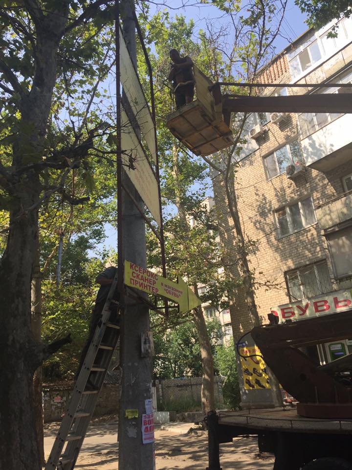 В Центральном районе Николаева коммунальщики демонтировали несколько незаконных рекламных конструкций.