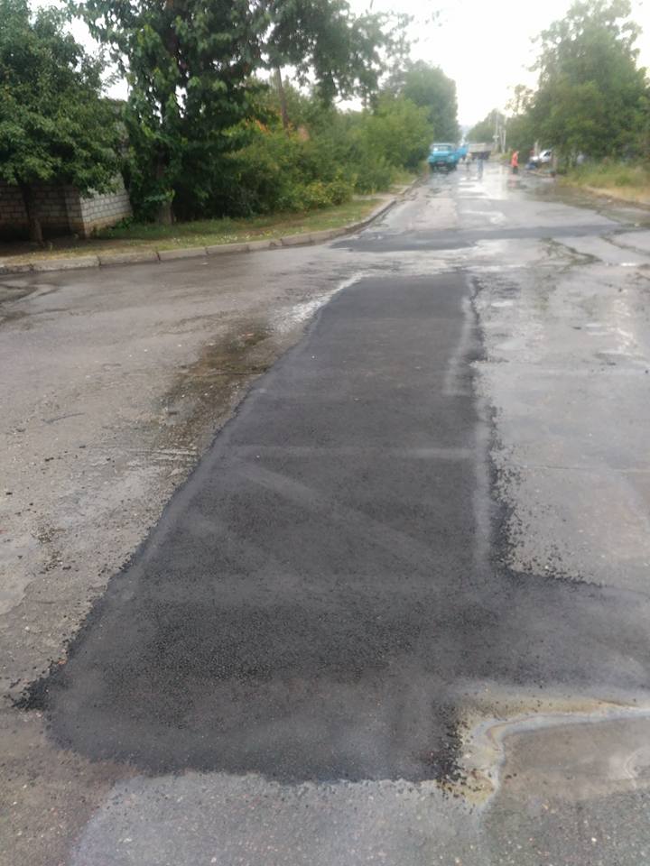 В Варваровке дорожники в дождь укладывали асфальт
