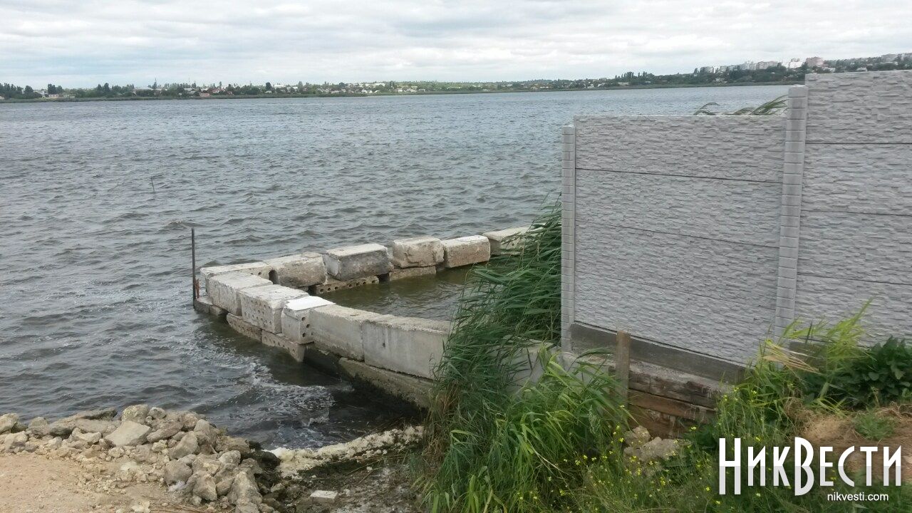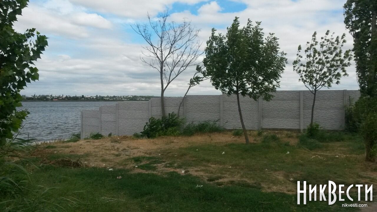 Местные жители рассказали НикВестям, что застройщик оградил прибрежную зону, отобрав у них возможность подойти к реке Ингул на данном участке.