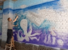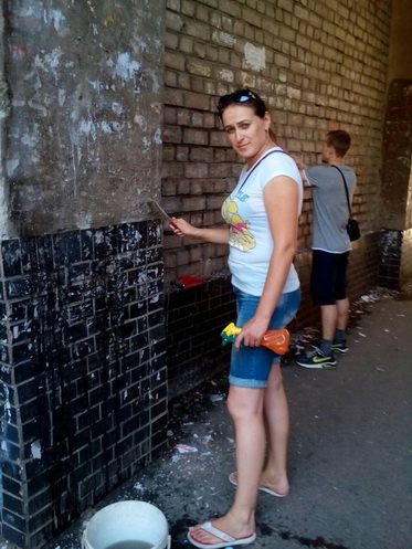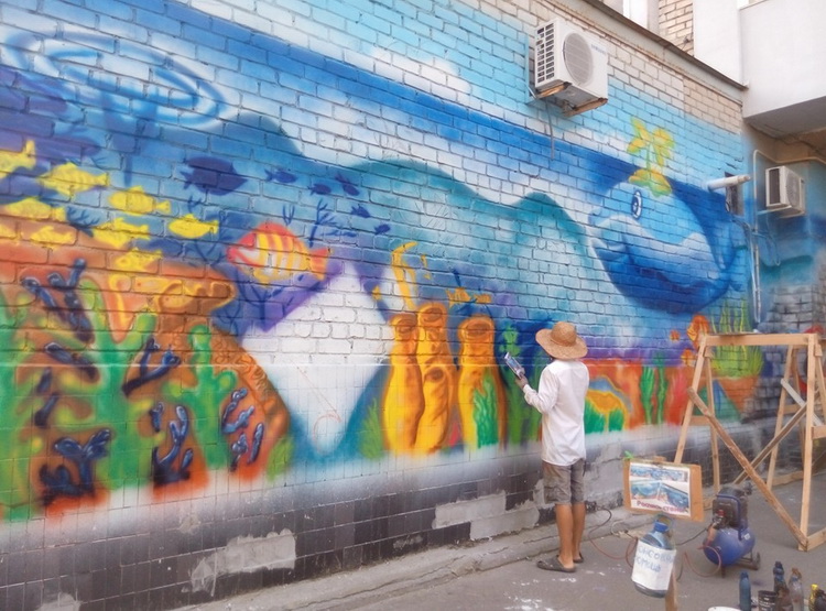 На прошлой неделе Молодежный Совет Николаева (в него входят представители спецморпорта «Октябрьск» и НГЗ) приступил к реализации проекта. Начали с подготовки стены. Отмыть ее от сотен «въевшихся» объявлений было делом непростым. «Коммунальщики», конечно, тоже приложили свою руку к наведению здесь порядка, но до идеально чистого состояния стену довела небезразличная молодежь. 20 августа началась уже непосредственно роспись стен.