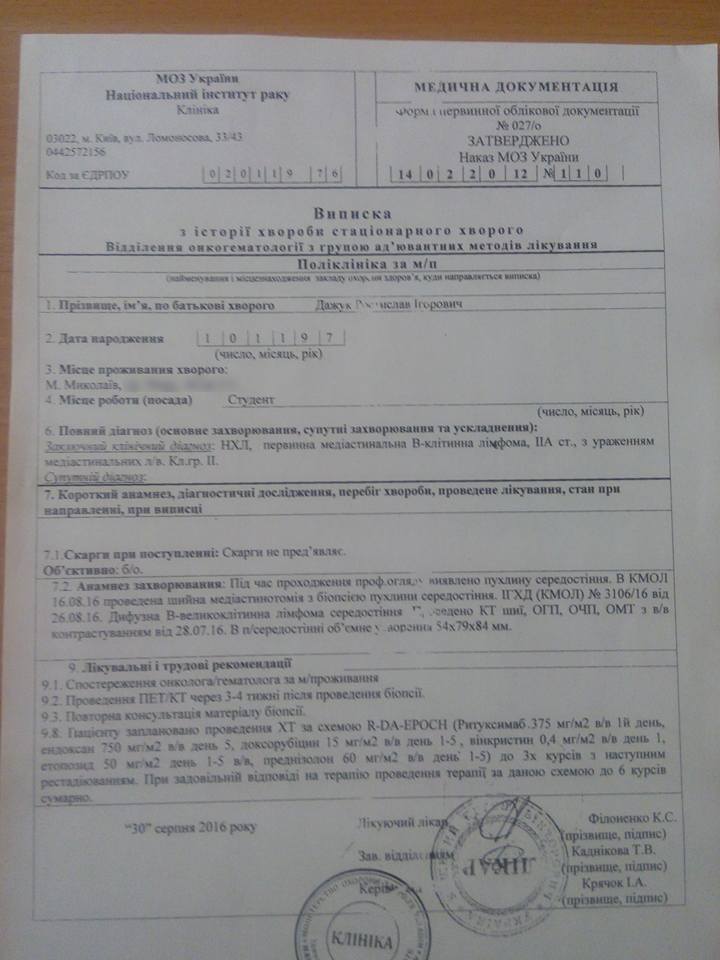 Николаевскому студенту требуется помощь для лечения лимфомы