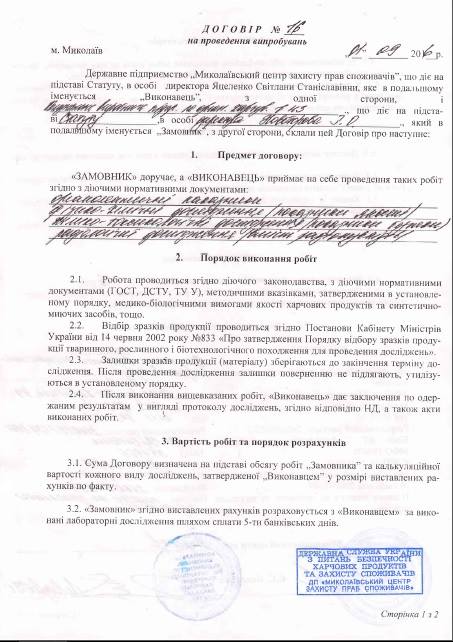 Коммунальное предприятие по организации питания детей заключило договор с государственным предприятием «Николаевский центр защиты прав потребителей» на проверку продуктов перед поставкой их в школы и детские сады города. Договор вступил в силу 1-го сентября.