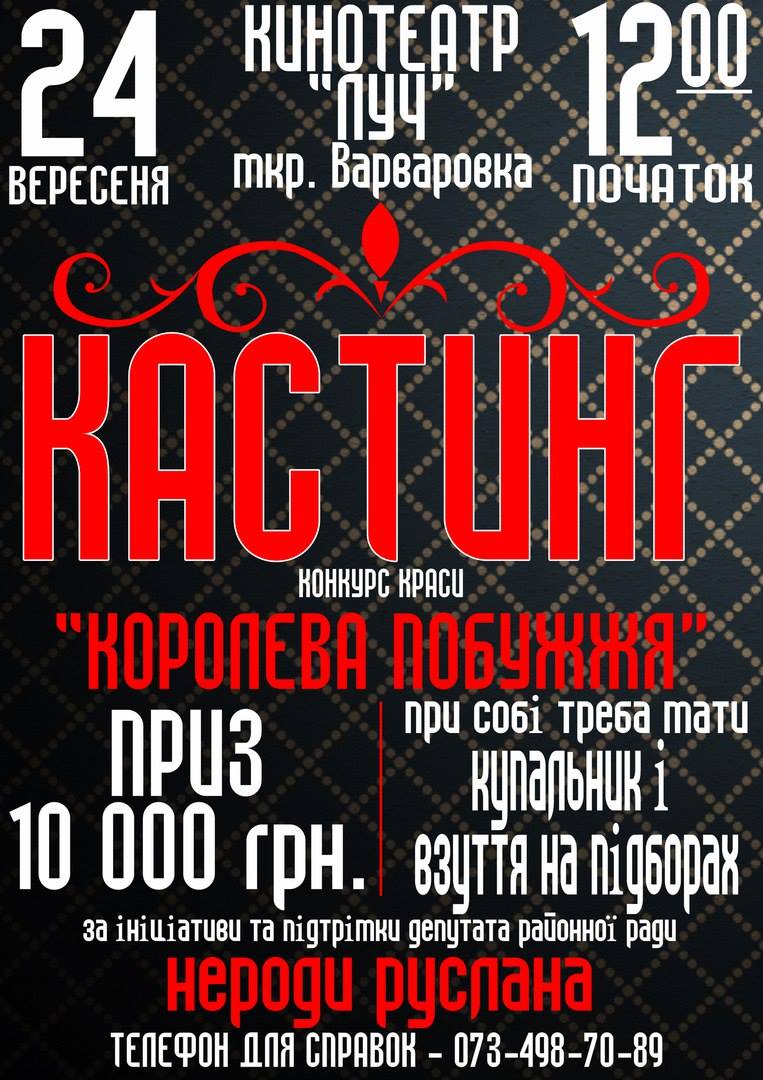 – Дорогие девушки! Появилась возможность снова показать, как Вы прекрасны, обаятельны и привлекательны! При поддержке и инициативе депутата районного совета Русланы Нероды проводится новый конкурс красоты «Королева Побужья», где главным призом будет 10 000 гривен! Не упустите свой шанс доказать, что именно Вы можете стать «Королевой Побужья»! – сказано в сообщении.