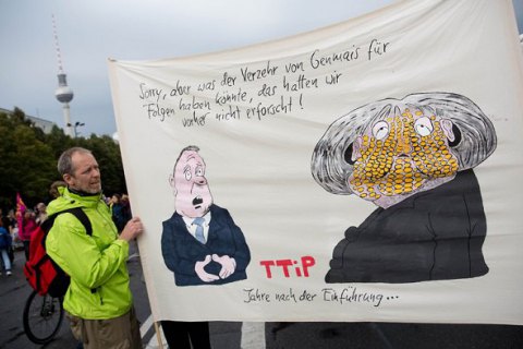 Десятки тысяч человек вышли на акции протеста в крупных городах Германии, протестуя против предлагаемого соглашения о Трансатлантическом торговом и инвестиционном партнерстве (ТТИП). Только в Берлине на манифестацию пришли 80 тысяч человек.