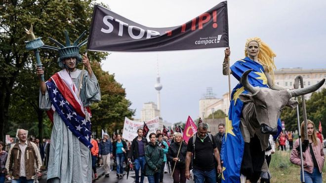 Критики соглашения считают, что оно ослабит контроль над защитой окружающей среды и негативно отразится на трудовых правах граждан. Кроме того, протестующих не устраивает проект аналогичного соглашения с Канадой.