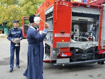 Перед тем, как поставить технику в боевой расчет, прошла церемония освящения.