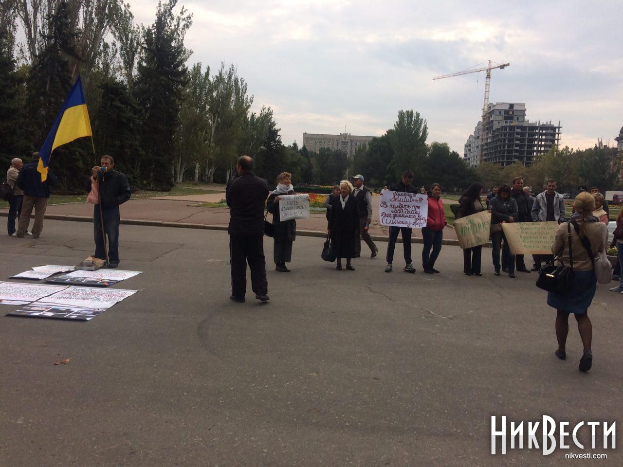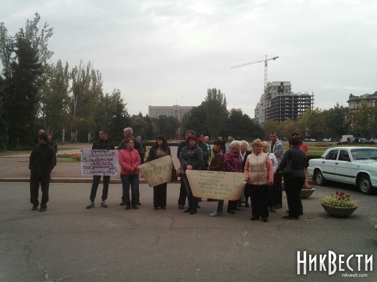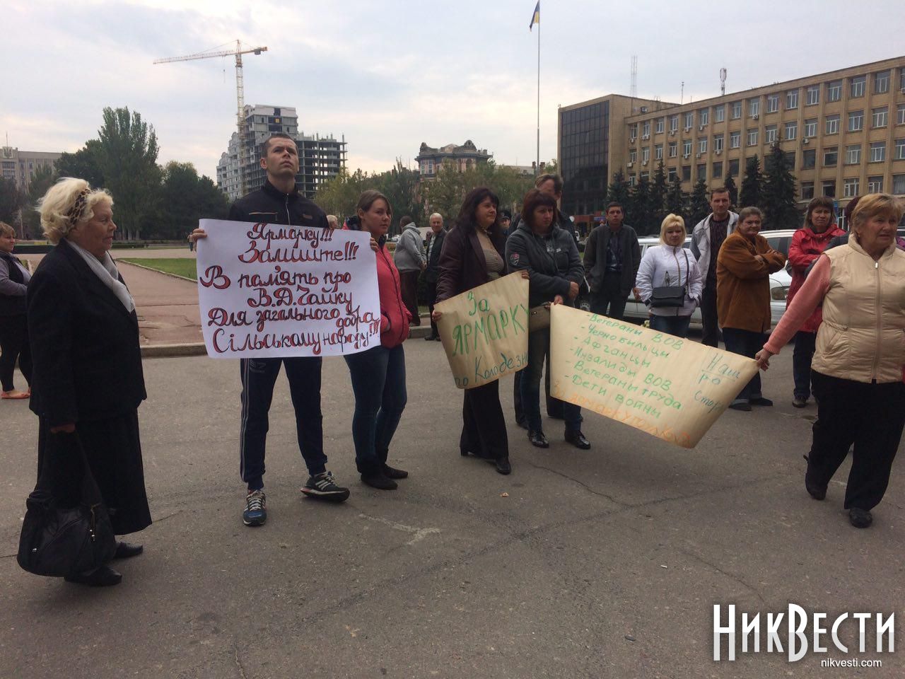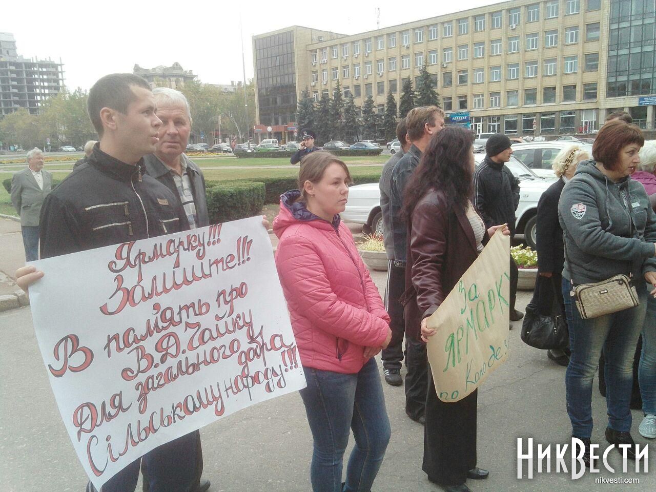 Сегодня, 29 сентября, у здания Николаевского горсовета собралась группа людей в составе 11 человек с требованием не мешать работе продуктовой ярмарки на улице Колодезной.