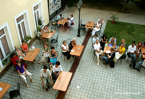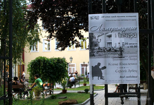 Вечера проходят в кафе при Русском драмтеатре. С начала лета Николай Кравченко любезно предоставил николаевскому бомонду место для вечерних встреч. В этот раз собирала весь пришедший народ Ирина Гудым. Свои стихи должны были читать Ксана Коваленко и Сергей Зубец.