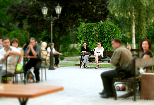 Народ Бомонд начал подтягиваться и рассаживаться. В небольшом театральном парке тихо как-то и спокойно (хоть самому стихи читай), фонтанчики.., скульптуры... - в двух шагах улица совершенно не слышна.