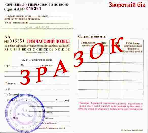 Кроме того, как сообщает Департамент ГАИ Украины, введено и временное разрешение на управление транспортным средством, которое в обязательном порядке выдается нарушителю в случае изъятия у него удостоверения водителя за совершенные нарушения ПДД согласно административному Кодексу Украины.