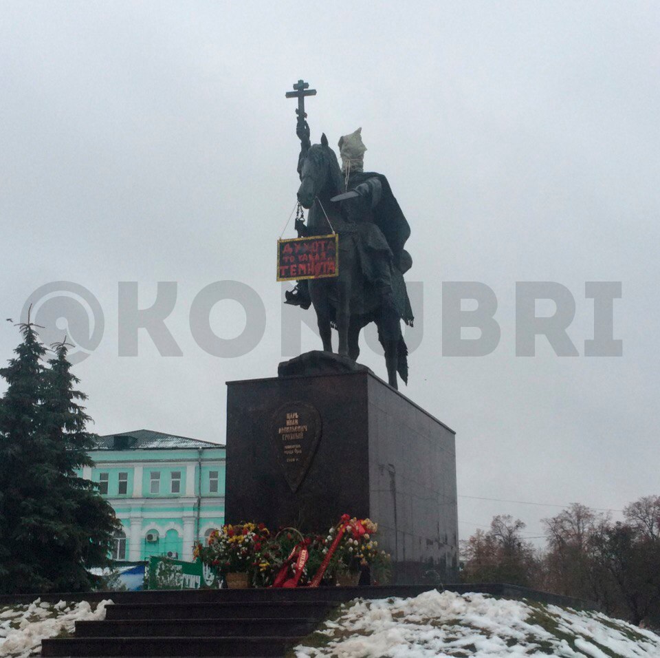 В России на памятник Ивану Грозному надели мешок