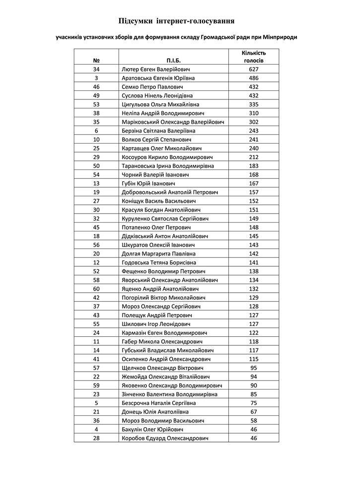 Отметим, на одно место в общественном совете претендовала сразу два кандидата. Евгений Лютер набрал наибольшее количество голосов интернет-пользователей - 627.