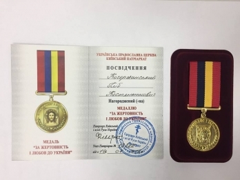 Филарет наградил волонтера из Первомайска медалью «За жертвенность и любовь к Украине»