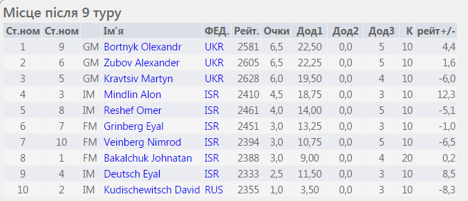 Николаевцы набрали по 6,5 очков из 9, разделив первое-второе места. По дополнительным показателям победителем турнира стал Александр Бортник.