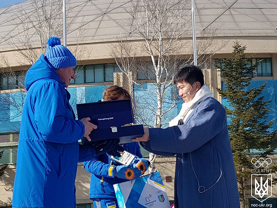 Украинскую делегацию поздравил мэр Олимпийской деревни, Олимпийский чемпион и член Международного Олимпийского Комитета Ю Сын Мин.