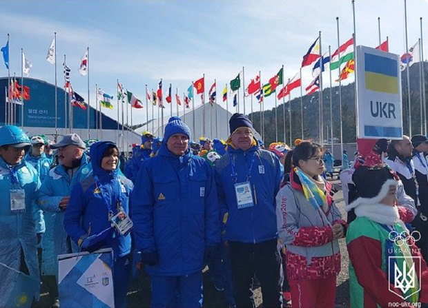 В Олимпийской деревне Пхёнчхана на специализированной площади состоялось поднятие государственного флага Украины под аккомпанемент национального гимна и при участии спортсменов и тренеров сборной.
