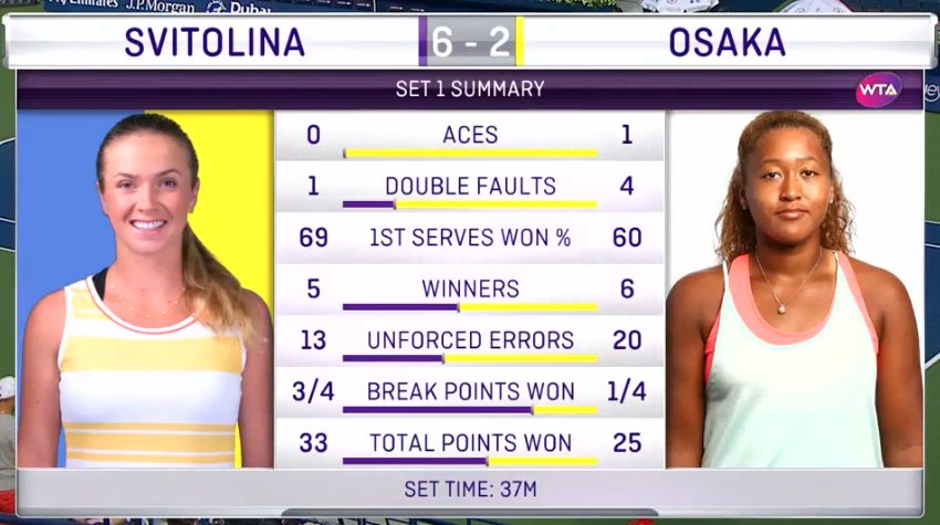 Наоми Осаке удалось забрать несколько геймов, но в 8 гейме украинке все-таки удалось дожать соперницу.