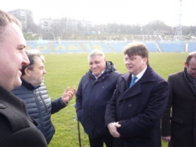 Сначала Игорь Жданов ознакомился с процессом реконструкции центрального городского стадиона, где пообщался с депутатом городского совета Сергеем Кантором.
