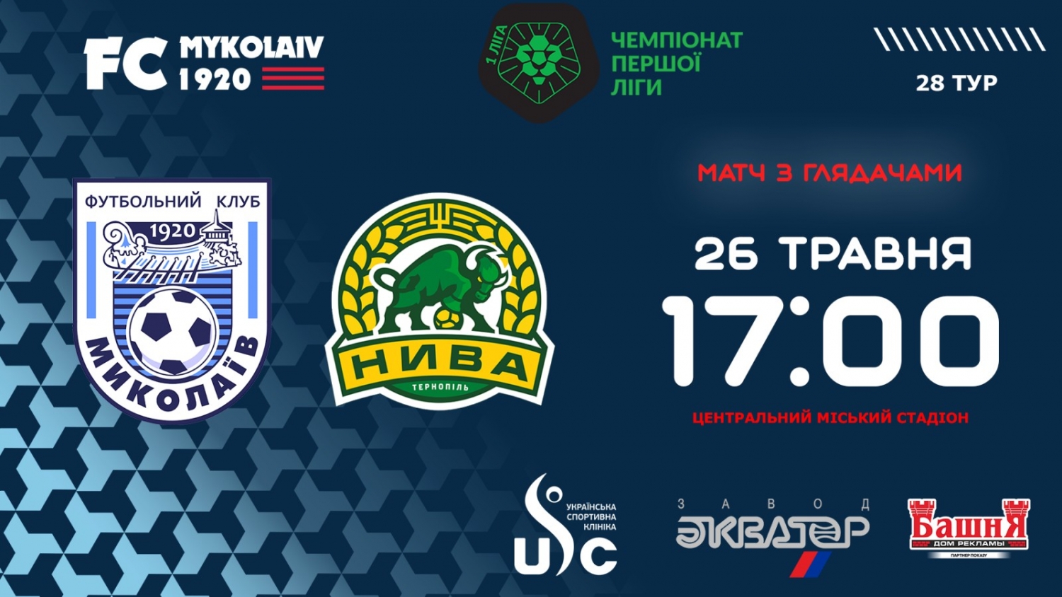 В среду, 26 мая, МФК «Николаев» в матче 28-го тура чемпионата Украины по футболу в первой лиге сыграет с тернопольской «Нивой». Поединок состоится на Центральном городском стадионе. Начало в 17.00.