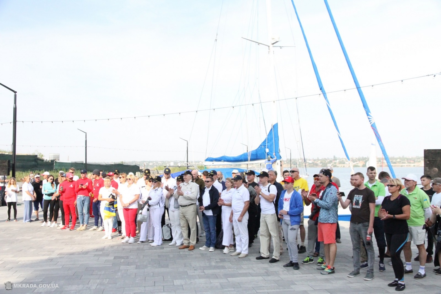 Торжественная церемония открытия парусных гонок состоялась на городском пространствае *8 ПРИЧАЛ. Яхтсменов поздравил мэр Александр Сенкевич.