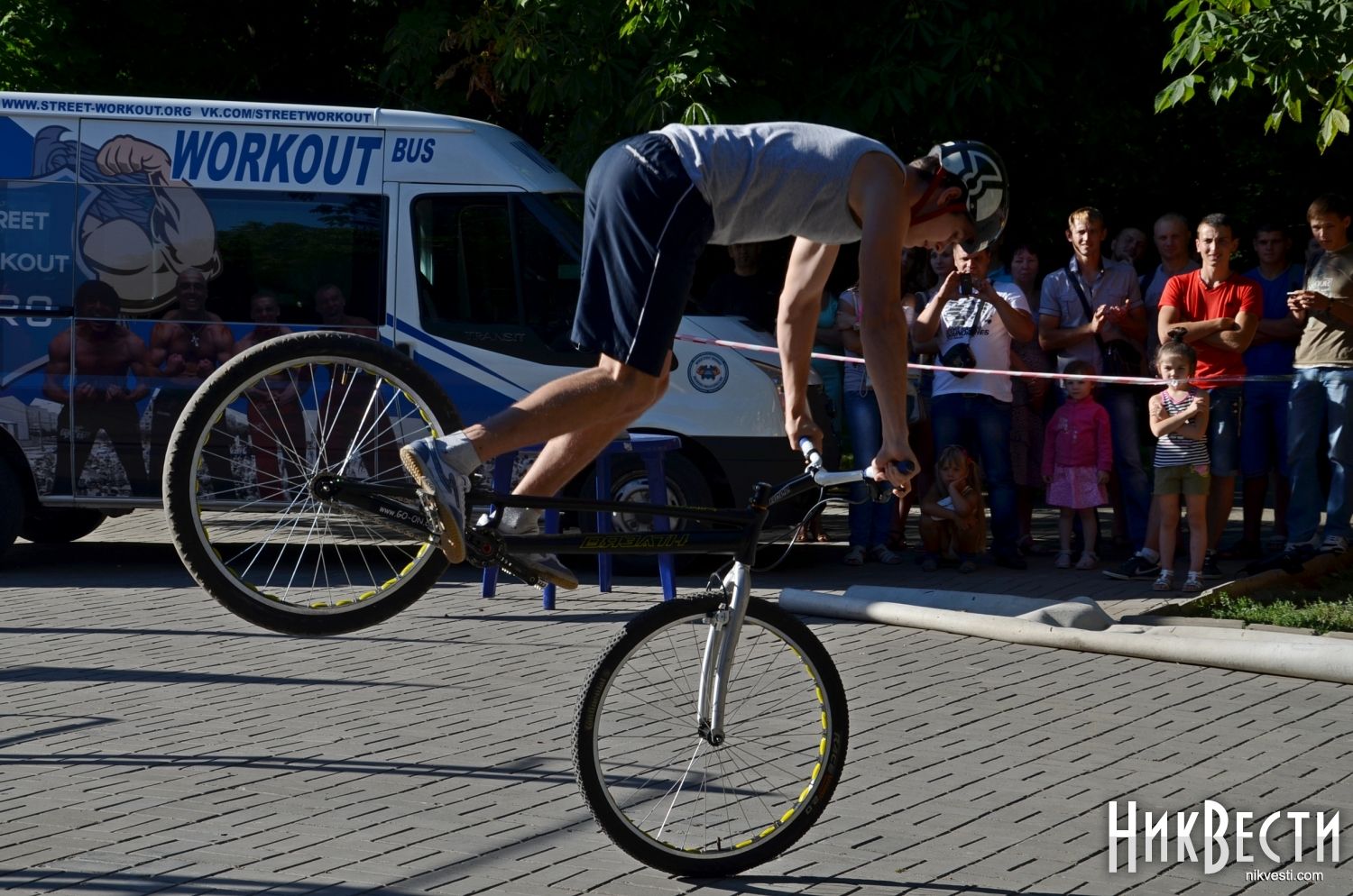 Одним из самых захватывающих выступлений стало велошоу с прыжками через лежащих на земле людей.