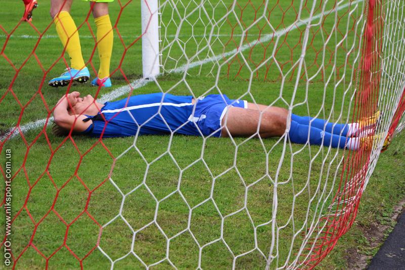 Уже на 3-й минуте после короткой перепасовки Гемеги и Яремчука мяч от защитника МФК «Николаев» отскочил к Хлебасу, который с нескольких метров вколотил его в ворота. 1:0. Буквально тут же Савченко выскочил один на один с Восконяном, но пробил выше перекладины. Однако на 29-й минуте Хлебас все же удвоил счет - он ударом головой с угла вратарской замкнул фланговый прострел Гемеги. 2:0. На 42-й минуте этот неугомонный форвард мог и хет-трик сделать, однако его дальний выстрел получился чуть не точным. У николаевцев тоже были шансы поразить цель. Так, на 27-й минуте Загинайлов получил мяч в чужой штрафной от Прокипчука, но замешкался, и его «накрыли» защитники. А вот ударам Сомова, Адаменко и Остапенко не хватило точности.