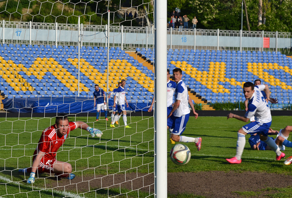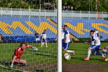 А на 17-й минуте МФК «Николаев» забил. Это Ковалёв получил мяч неподалёку штрафной соперников, подработал и пробил точно в нижний угол ворот Махновского. Кипер гостей не выручил – 1:0.